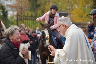 Tous les toutous sont sur le 31, bichonnés, toilettés, ils viennent recevoir la bénédiction donnée par l'abbé Dorthu. Les chevaux paradent sous le soleil. Les petits pains bénits sont distribués avec le sourire. Le soleil affiche un petit clin d'oeil complice.