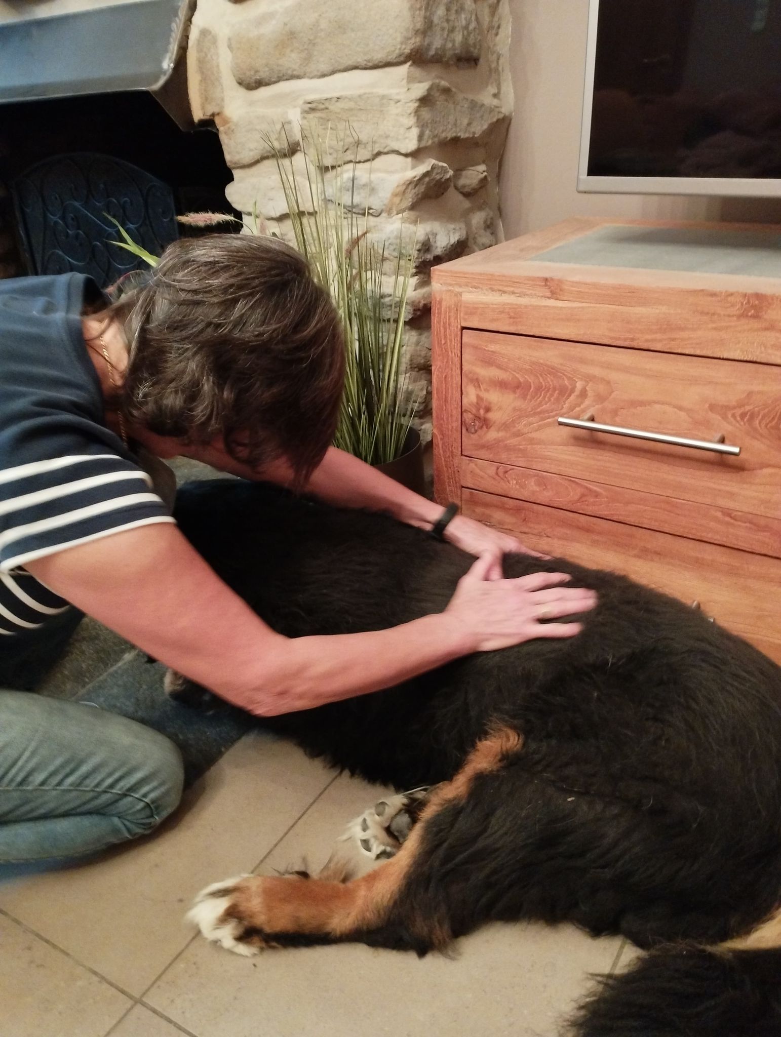 De plus, Pascale s'est maintenant lancée dans la pratique du « massage canin ».