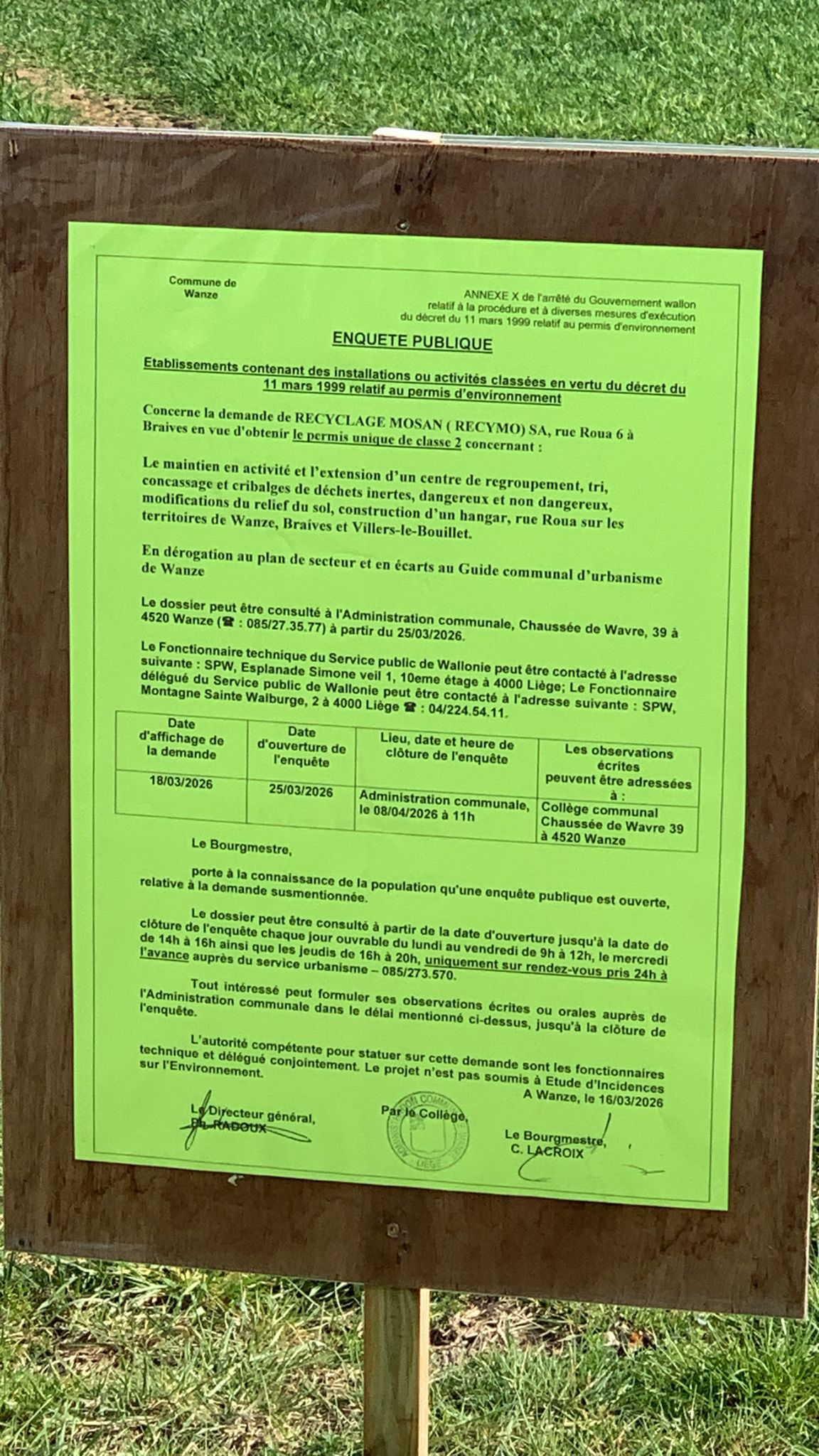 Ce nouveau projet, bien que domicilié à Braives impacte directement les Vinalmontois et plus particulièrement les habitants du Roua puisqu'il est situé à hauteur du n0 6 de la rue du Roua, entre le Roua et Warnant-Dreye, à la place des anciennes sablières du Roua.