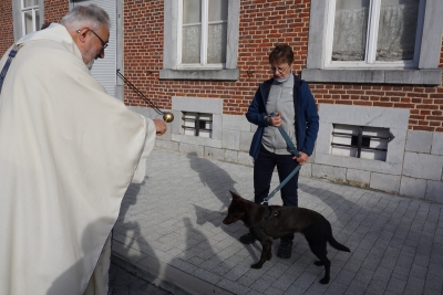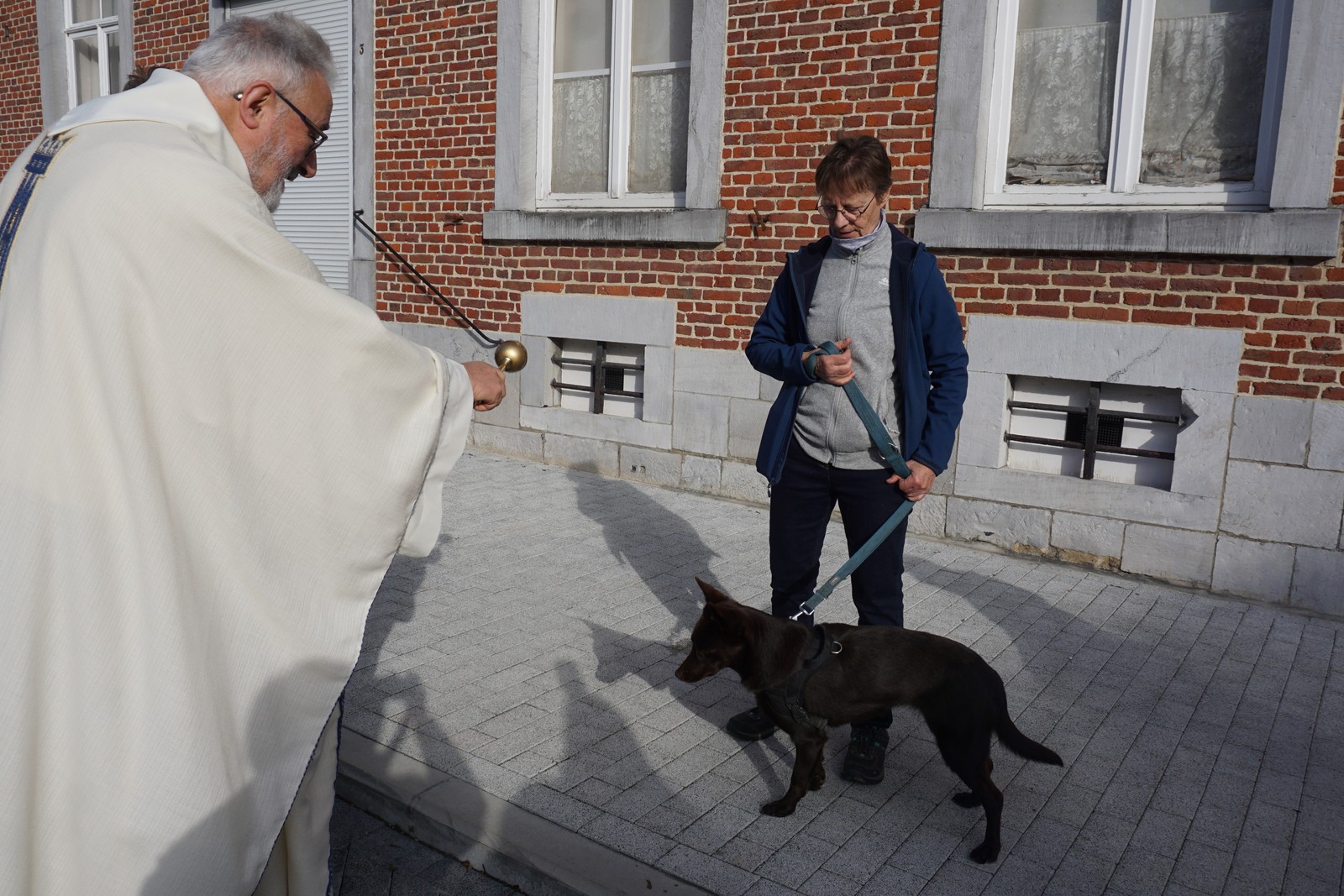 A 11h00, Mr le Curé Dorthu a célébré l’eucharistie, béni les petits pains, dans l’église St Pierre fleurie et lumineuse. Nous y étions nombreux: paroissiens habituels, fidèles venus d’ailleurs, une troupe de scouts de Wolluwé et bien sûr, des chiens qui sont restés calmes en attendant leur bénédiction et leur récompense.
