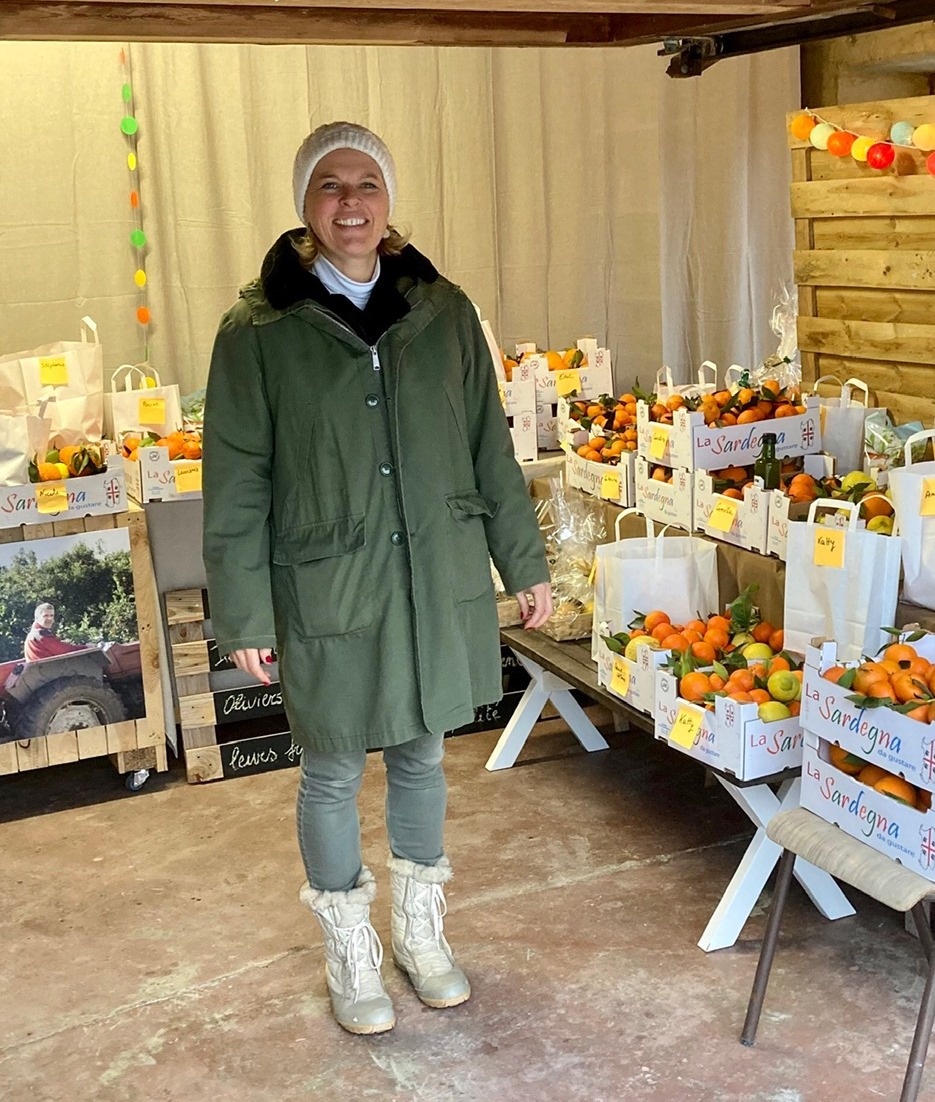 Dès la mi-novembre et jusqu'en avril, Christine fait venir de délicieux agrumes, oranges, clémentines, citrons... directement de Sardaigne. Il faut dire que sa soeur Anne-Caroline et son beau-frère Emmanuel cultivent ces agrumes depuis 30 ans dans le petit village de San Priamo dans le sud-est de la Sardaigne.