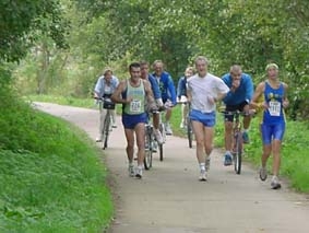 Enfin, le grand jour est arrivé: nous sommes le 14 octobre 2001, et contre vents et marées, Jean-Luc s'élance, concurrent remarquable et remarqué au départ du marathon de Huy.