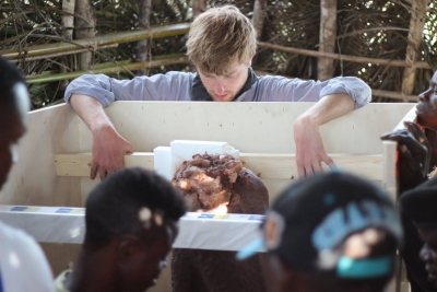 Nicolas Jolly récupère une oeuvre d'art en chocolat d'un artiste congolais : la sculpture revient d'une exposition qui a parcouru le monde (photo Chirac Kawusu)