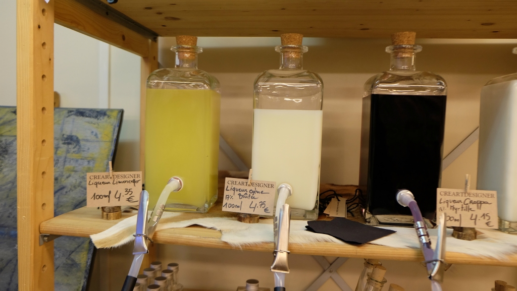 du whisky, du rhum, des liqueurs aux goûts "spéculoos", chocolat-orange, grappa myrtille, limoncello ou "Licorne" (top secret...) et bien plus.