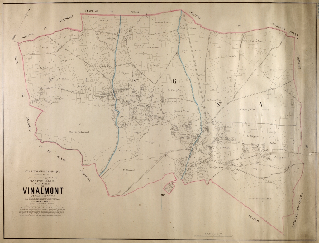 Georges Close, l'ex Wanzois, l'ex étudiant de l'athénée de Huy, nous a gentiment fait parvenir le Plan de Vinalmont établi par le cartographe belge C. Popp vers le milieu du 19ième siècle. Il faut savoir que la grand-mère maternelle de Georges est née à Vinalmont et que M. Close est généalogiste à ses heures.