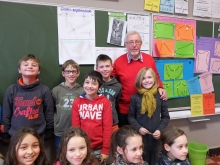 Mme Struvay et ses élèves de 3ième et 4ième années ont étudié ces dernières semaines les différences qu'il y avait au niveau du fonctionnement de l'école de Vinalmont durant les années 50 et 60 par rapport à notre époque. Ils ont invité le grand-papa d'Arthur qui a usé ses fonds de culotte sur les bancs de l'école de Vinalmont fin des années 50.
