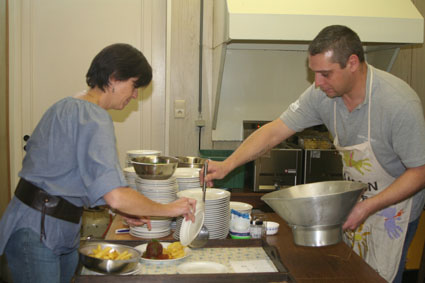 200 repas samedi, plus d'un centaine dimanche à mid : dans la petite cuisine de la salle Delbrouck, cela se bousculait ferme dans une ambiance festive.
