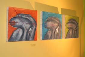 Son vaste atelier situé à l'arrière de la maison lui permet de se consacrer à son art dans un univers envoûtant. Elle nous explique la signification profonde de ses oeuvres, chaque détail révélant une partie de l'ensemble, chaque trait traduisant une main sûre et artiste.