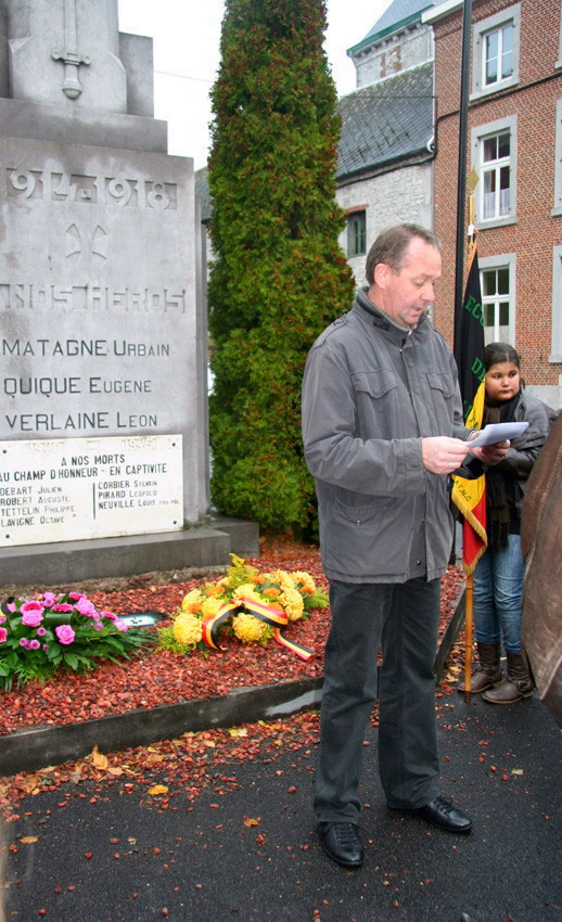 Le 10 novembre, le traditionnel relais sacré se déroule place des Héros, devant l’église de Vinalmont.