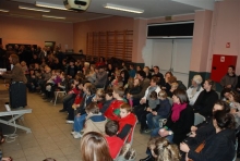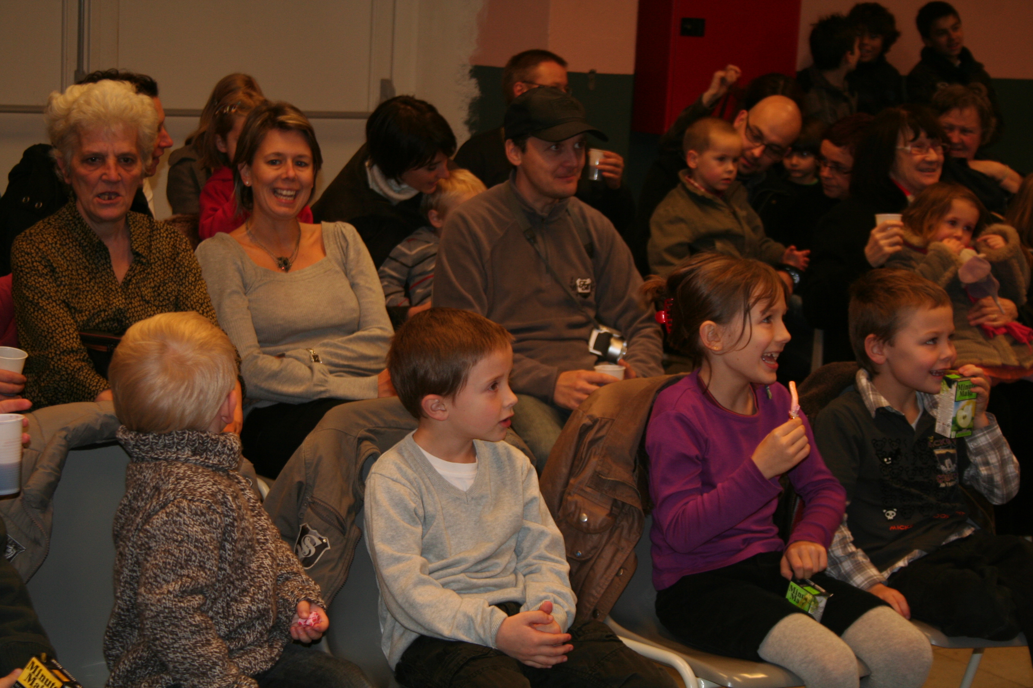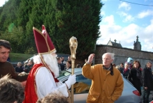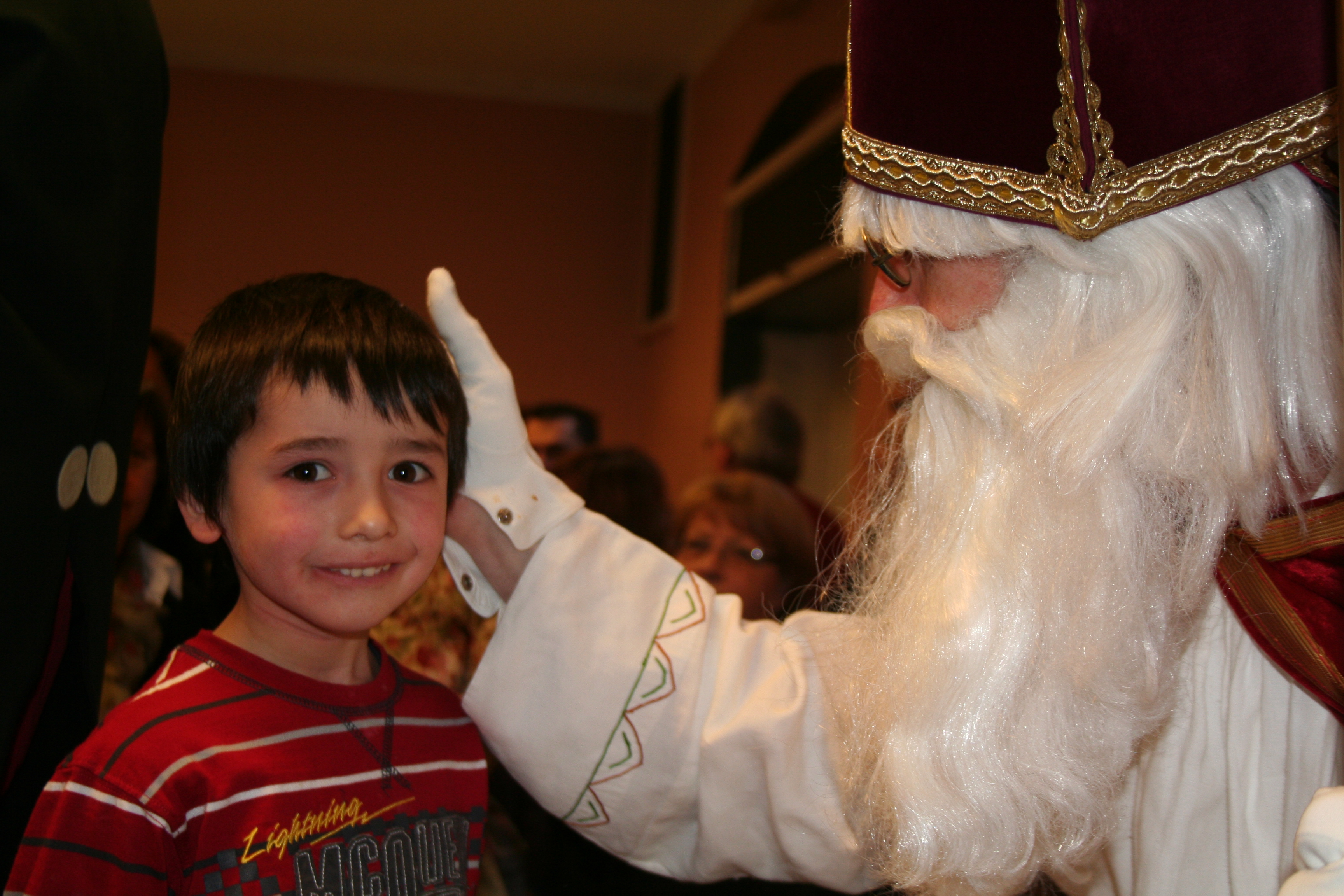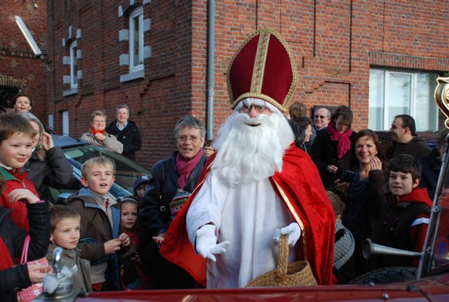 Les enfants l'attendent, nombreux. Le clown Harold anime un après midi de bonne humeur et Saint Nicolas accueille tous ses amis, distribuant pommes, mandarines et bonbons.