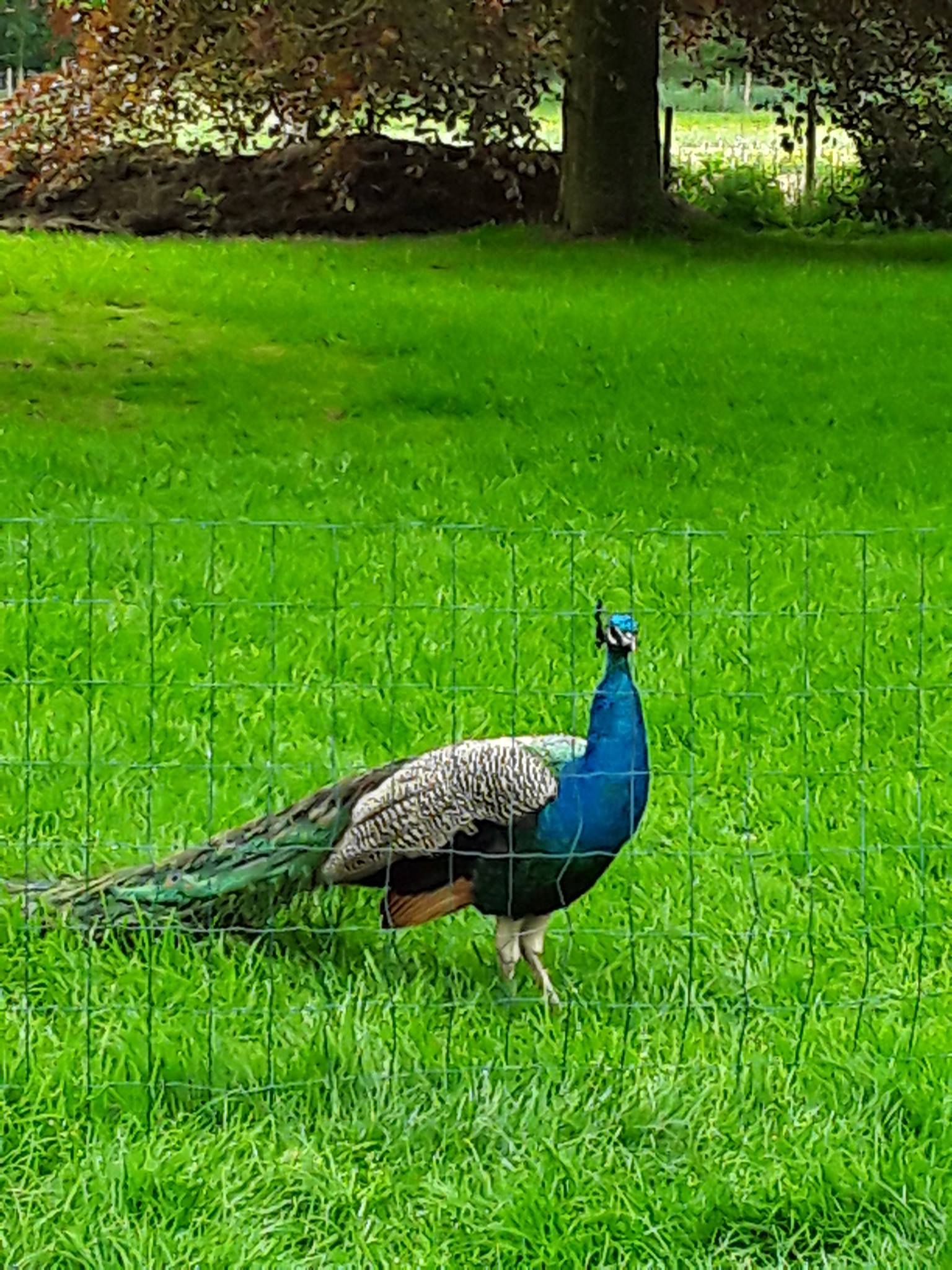 Claudine Delcourt Daubechies l'a elle aussi hébergé dans son magnifique verger . Notre Léon a alors fait le paon devant les oies de Claudine . Pan , pan , pan, un vaurien a même voulu avoir un paon empaillé . Mais rien n'y a fait . Léon est toujours à Wanzoul .