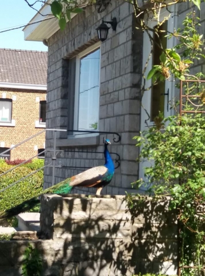 Le paon qui fait du porte à porte rue du Pousserou - Photo Murielle Dethier